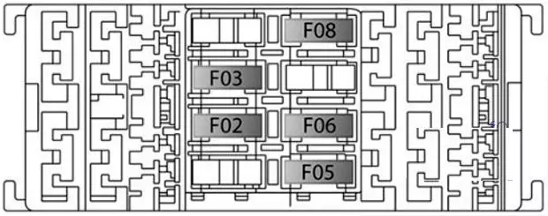 | F81 | 60 A azul | – | – | 2017-2018: Módulo de bujías de incandescencia 2019: Módulo de bujía de incandescencia, alimentado por batería DDCT SDU |